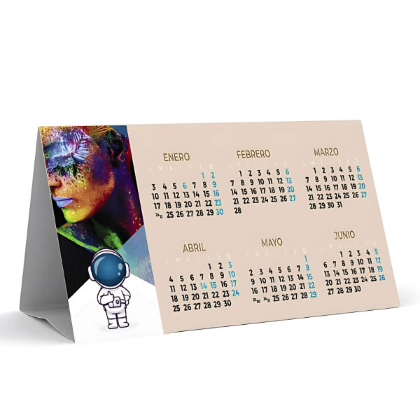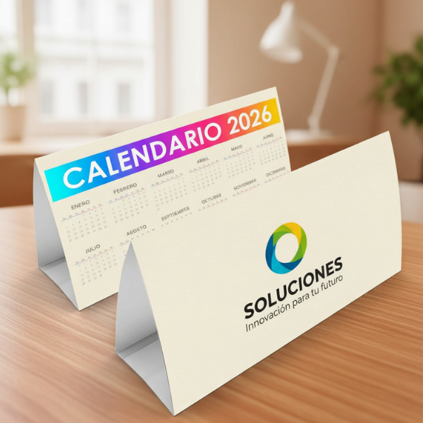Cada calendario de sobremesa personalizado se imprime a todo color sobre papel de alta calidad, con una base firme y acabados profesionales. Perfecto para mantener tus citas, recordatorios o promociones siempre a la vista.
