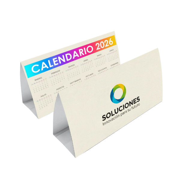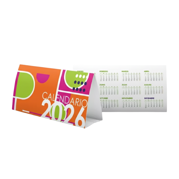 Ofrecemos calendarios de sobremesa personalizados en varios tamaños (15×21 cm y 10×21 cm), perfectos para escritorios de oficina, mostradores o espacios personales.