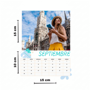 Disponible en 10×10 cm y 15×10 cm, con encuadernación wire-o y papel premium de 300 g. Puedes añadir fotos, logotipos o mensajes a todo color, o elegir entre nuestras plantillas prediseñadas. El calendario imán nevera personalizado es perfecto tanto para uso personal como para promocionar tu marca o empresa.