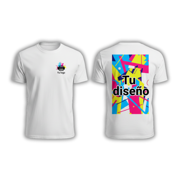 Camiseta personalizada con tu diseño, logo o foto a todo color. Disponible en varias tallas y colores. Perfecta para uso personal, eventos o promociones.